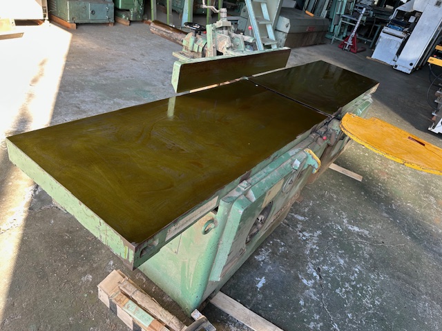桑原製作所の超大型手押し鉋盤(600巾)と服部機械の軸傾斜盤の中古が入荷しました。