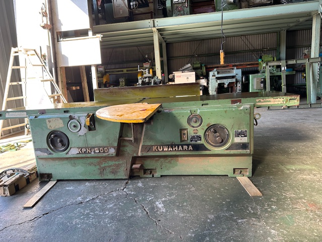 桑原製作所の超大型手押し鉋盤(600巾)と服部機械の軸傾斜盤の中古が入荷しました。